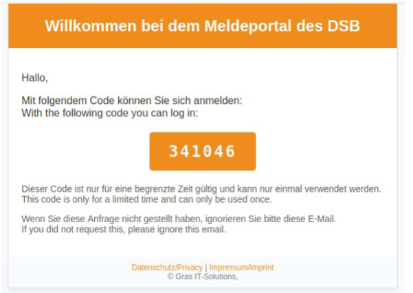 Sie erhalten eine E-Mail an die angegebene Adresse, mit dem einmaligen Anmelde PIN. Dieser ist nach der Verwendung nicht mehr gültig.